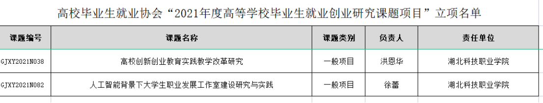 2022年3月,高校毕业生就业协会启动了2021年度高等学校毕业生就业创业研究课题申报工作,学校高度重视科研在毕业生就业创业工作中的理论支撑作用,鼓励和支持教师积极申报,经学院推荐、科技处审核、招生就业处报送,最终2项课题成功获批立项。