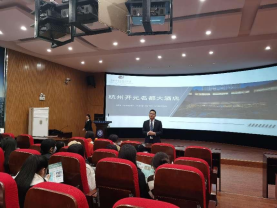 在武汉黄鹤楼假日旅行社宣讲会上,旅行社导游部经理、全国金牌导游员周媛向学生详细介绍黄鹤楼公园以及做好一名全国知名景点的讲解员在旅游业的意义与作用,鼓励学生大胆创新,用新的方式诠释“有活力、不一样的黄鹤楼”。