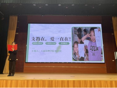活动现场,大家观看了寒假社会实践活动的视频集锦。机电工程学院王诗杰、电信工程学院张家贤、软件工程学院王燕、工商管理学院廖日锌、经济贸易学院廖寒璐、传媒艺术学院康超分别以“我的青春故事”作为主题,分享了自己在社会实践中的经历、感悟、经验和收获。他们在台上娓娓道来,充满激情与斗志,将“暖心春运”“PPT公司培训”“云支教活动”“社区法治宣传”等社会实践小故事展现得淋漓尽致。王诗杰在假期参与企业实践,被全国重点新闻网“长江网”报道;2021级工业机器人2班的张毅力为解决村里老人劈材难的问题,利用专业知识制作了劈材机;工商管理学院的志愿团队持续开展“留守儿童云支教活动”,将社会实践与专业所学相结合,力争打造社会实践365天全覆盖的实践格局。学生们表示,“在社会实践过程中,我们加深了对基层民生的了解,也体会到了家乡的飞速发展及对新技术的渴望。”