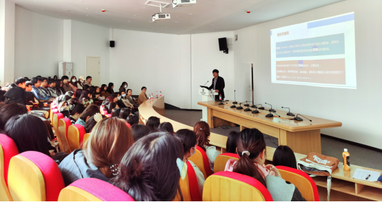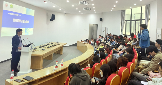 “情绪管理与压力应对”讲座伊始,赵宝富从学生听讲座的心情、情绪等角度入手,迅速把学生带入主题,结合学生在学习、恋爱、交友、娱乐等大学生活中的典型情景,再现了学生日常的情绪、压力表现和应对方式。在提问环节,赵宝富幽默、风趣、耐心地解答了学生关于恋爱沟通困惑、亲子关系困扰以及班级管理工作中的压力如何调节等问题,赢得学生阵阵掌声,让学生在哈哈大笑中了解了情绪是什么,情绪管理有哪些方法和步骤;压力是如何产生的,如何建设性地应对压力。