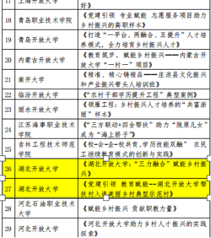 本网讯(通讯员 刘捷 文/图)近日,中国教育在线“2022高校赋能乡村振兴典型案例”获奖名单公布,由华体会正规平台宣传部牵头遴选上报的两个案例《党建引领 教育赋能 湖北开放大学帮扶村入选美丽乡村典型示范村》《湖北开放大学:“三力融合”赋能乡村振兴 》双双上榜,这也是湖北省唯一入上榜的高校。
