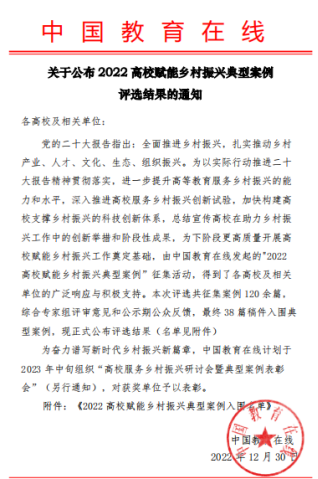 为进一步提升高等教育服务乡村振兴的能力和水平,深入推进高校服务乡村振兴创新试验,总结宣传高校在助力乡村振兴工作中的创新举措和阶段性成果,由中国成人教育协会、全国高校现代远程教育协作组指导,中国教育在线在全国范围内征集“2022高校赋能乡村振兴典型案例”,本次共征集案例120余篇,经组委会筛选和专家评审,38篇稿件入围典型案例。