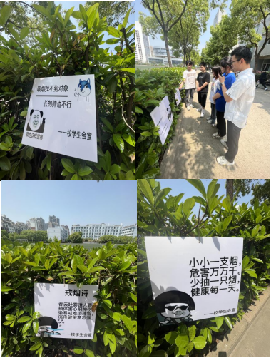 横幅签名对烟草说“NO”。4月11日中午,学生干部在足球场前组织开展了“自强不‘吸’,你我共行,对烟草说NO”的横幅签名活动。志愿者们积极现场宣讲,倡议同学们争当校园禁烟志愿者,主动宣传吸烟有害健康的科学知识,鼓励大家用实际行动为建设无烟校园、无烟班级、无烟宿舍贡献自己的力量。