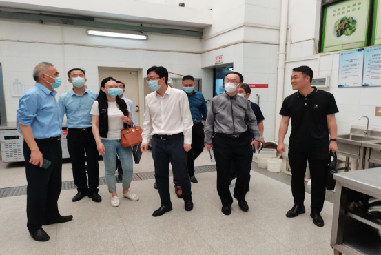 本网讯(通讯员 王永全/文 牛苏杭/图)4月17日下午,洪山区委常委、区政府党组副书记、副区长张健带领区市场监管局、应急管理局和鲁广社区负责同志来校督查食品安全“两个责任”落实情况。校党委常委李宜兵、后勤服务集团党总支书记黄超平和副总经理韩静陪同检查。