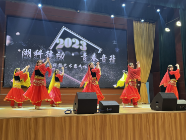 拉开本次艺术节序幕的是大学生艺术团精心准备的“凝心筑梦新时代,踔厉奋发向未来”文艺晚会。开场现舞队一曲热舞《the hydra》活力四射嗨翻全场,展现了青年的活力之美;主持队朗诵的《在中国大地上报到》《青春万岁》彰显了湖科青年不畏困难、团结奋斗的拼搏精神和奋进姿态;声乐队带来的歌曲《光年之外》《我的美丽》《红莓花儿开》旋律优美、声情并茂,引起了现场观众的共鸣,全场大合唱一首接着一首,手机闪光灯顿时汇成一片星海;现舞队的串烧舞蹈《炽》《rumor》别开生面,舞者尽显青春活力,令人耳目一新;由现场嘉宾音乐社代表和艺术团团长韩为儒一同带来的合唱《不会说谎的恰恰》《越来越不懂》欢快活泼,以高超的演唱技巧、动感的旋律唱响绚丽舞台,将晚会现场推向高潮;晚会最后在现舞队动感的舞姿和观众热烈的掌声中落下帷幕。