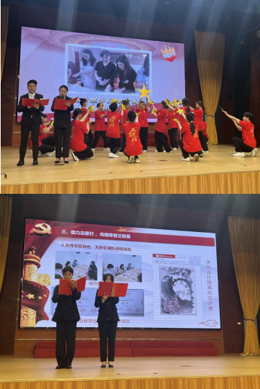 各学院分团委在汇报中充分展现了一年来所做出的努力和取得的成绩。他们在工作中聚焦学校共青团基层建设,继续深化共青团改革,增强共青团工作合力,进一步提升各学院团支部工作水平。不断加强阵地建设,大力拓展团的服务职能,进一步推进了网上共青团建设,形成“互联网+共青团”格局。传媒艺术学院分团委用情景剧的方式展现了学生组织丰富多彩的活动。工商管理学院分团委学生手握金灿灿的五角星,通过一心向党的队形展示了团队风采,体现了学院燃旺“四火”淬炼“四心”,引领新时代青年向阳而生的决心。
