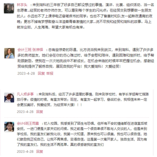 同学们在参与活动的同时,分享“我”与湖科的第一次“小确幸”,在故事随笔征集活动中,大家纷纷投稿。大家分享了来湖科的第一次感动、第一次温暖、第一次确幸,进一步激发了爱校荣校之情。