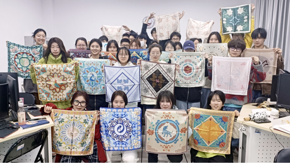 在本次课程活动中,传统图案纹样和丝巾进行爱的碰撞,课堂知识与专业技能紧密结合,进一步引导学生梳理知识点并灵活运用,提高了学生动手能力,是对传统手工艺和文化的传承,学院项目化教学成效初显。