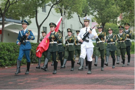 7时许,“立正!齐步走!”随着气势如虹的口令响起,国旗护卫队身着整齐的制服,踏着整齐划一、铿锵有力的步伐走向升旗台,全体师生面向国旗庄严肃立,行注目礼。伴随着雄壮激昂的《义勇军进行曲》,鲜艳的五星红旗冉冉升起,迎风飘扬,在晨光中熠熠生辉,全场师生齐唱国歌,向国旗致敬。