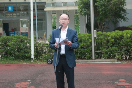 李宜兵在升国旗仪式上致辞。他说,国家的希望在青年,民族的未来在青年,为实现中华民族伟大复兴的中国梦而奋斗,是中国青年运动的时代主题。同学们身处中华民族发展的最好时期,只有把理想追求融入党和国家事业,与新时代同向同行,方能不负韶华、不负时代、不负人民。李宜兵提出了三点希望:一要志存高远,勤学深学,善于在学习过程中内化“知识”。学习的真谛在于内化,要把平时所学内化,丰富自己的精神世界,促进自身精神世界的提升。作为青年学生须做到立大志、识规律、强内化,方能练就过硬本领;二要学思结合,不耻下问,乐于在知识海洋里解决“问题”。“苟日新,日日新,又日新”,不仅要擅长在生活中“淘宝”,更要擅长在知识的海洋中淘出问题与真知;三要笃学尚行,踏雪留痕,勇于在实干山峰上攀凿“人生”。作为青年学生,要做勇于实践的操练兵、做脚踏实地的小工匠、做迎难而上的攀登者,在磨砺中蜕变成长,一步一个脚印,不断向上攀登,最终凿出属于自己的别样人生。