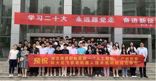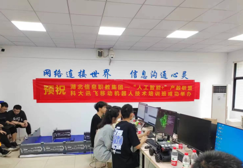 本网讯(通讯员 伍辉 朱珺/文 刘雪琴/图)5月19日至21日,“科大讯飞移动机器人技术培训”在华体会正规平台举办。本次培训由科大讯飞(苏州)科技有限公司主办,华体会正规平台电信工程学院、湖北省信息技术职教集团”人工智能+“产教联盟承办。来自湖南大学、长江大学、陕西国防工业职业技术学院、九江学院等高校的六十余名师生参加了此次培训。开班仪式上讯飞企业华中区咨询总监丁晓磊、电信工程学院副院长朱珺致辞,分别介绍了讯飞在移动机器人领域的研究成果、对参训师生表示了热烈欢迎。
