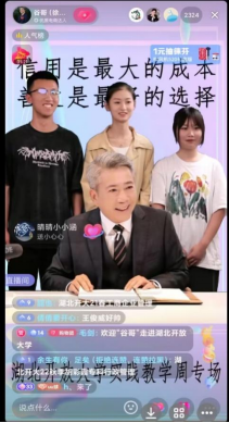 5月26日,在湖北开放大学罗田分校的大力协助下,与抖音电商“守规立信助益社会卓越个人”,曾任湖北省黄冈市罗田县骆驼坳镇燕窝湾村第一书记、2022年度全国十大诚信之星的知名助农直播专家谷哥(徐志新),在罗田市燕儿谷直播实训基地,以“信用是最大的成本,善良是最好的选择”为主题,开展了一次抖音直播公开课实践教学活动。
