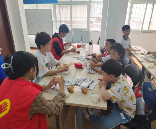 “区微里”志愿服务队联合鲁广社区,开设“四点半学校 美育课堂”特色服务项目,为辖区孩子们提供一个课后辅导站点。志愿者积极筹划、细致安排,根据该年龄阶段学生的特点,设置五个小课堂,包含“书画研习”“儿童插画”“非遗剪纸”“手工制作”“党史小课堂”,涵盖思想教育、科学文化、美育等领域。在课堂上为确保每一位孩子都能融入活动当中,志愿者们采用了动画片、分组活动、角色扮演等孩子们喜闻乐见的形式,鼓励孩子们“动起来”“想起来”“做起来”,培养团队合作意识、动手动脑能力、与人交际能力。课堂气氛活跃,让孩子们在欢笑中掌握知识,在活动中收获成长。