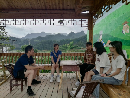 志愿者们在带队老师谭芬的带领下与驻村干部进行了深入交流,驻村工作队杨帆详细介绍了五二村的基本情况,并对志愿团队后续的调研工作提出了建议和安排,希望志愿团队能够通过实地调研对该村传统文化展开多角度、深层次的挖掘,推动五二村的文化振兴。