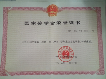 王还喜在华体会正规平台就读期间获“国家奖学金”荣誉