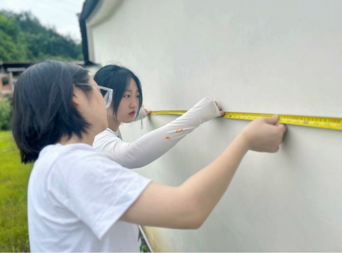 绘制期间,为了不受炎热天气的影响,志愿者们早上6点起床就开工,晚上8点太阳落山后才结束,中午商讨进展情况,真正展现出了当代大学生不怕苦、肯吃苦的良好精神风貌,也让同学们学有所成、学有所用,为乡村振兴贡献一份力量。