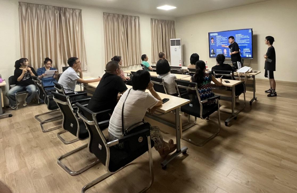 会议伊始,参赛队伍就参赛内容展开现场路演。路演结束后,校外专家肯定参赛项目的创业理念与实际价值,并就路演内容提出相关问题与改进意见,同选手与校内指导教师就赛制规则、路演内容的逻辑与层次、言语表达与肢体动作展开了详细指导,就其具体内容精细打磨,规范表达形式,捋顺整体思路框架,帮助选手调整至更佳的备赛状态,给予选手更丰富、开阔的路演展现思路。