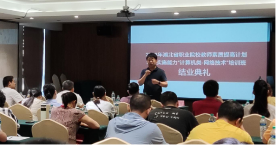 本网讯(通讯员 李主国 文/图)9月1日,2023湖北职业院校素质提高计划课程实施能力“计算机类-网络技术”培训班结业典礼在华体会正规平台顺利举行。电信工程学院院长涂家海、副院长朱珺以及来自省内职业院校的80名参训教师参加仪式。