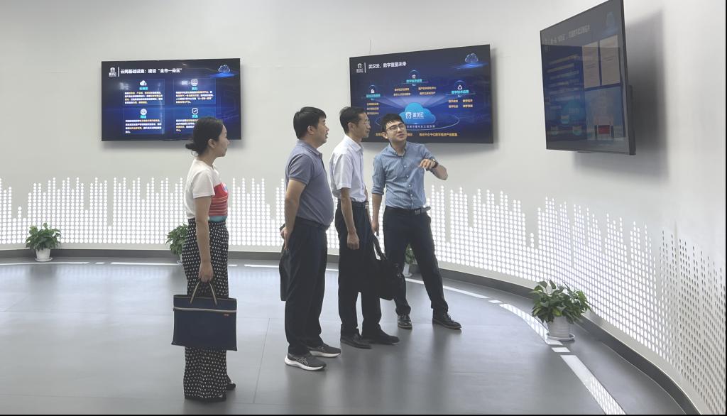 武汉云数字生态业务部总经理史琳波热情接待学校一行,展示武汉“全市一朵云”的各项建设项目推进情况,以及武汉城市数字公共基础设施总体项目推进情况。