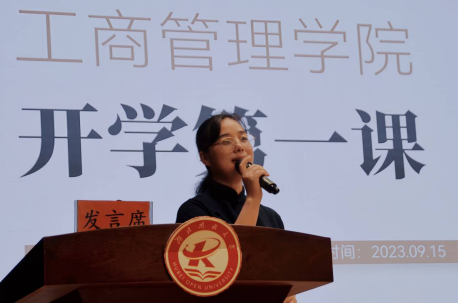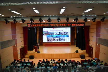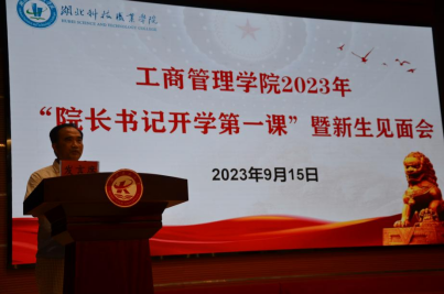 本网讯(通讯员 寇永艳 熊韵坚/文 漆良愿/图)为了让新生更好地了解学院,更快地适应大学生活,更好地融入学校大家庭,9月15日上午,工商管理学院开展2023年新生“院长书记开学第一课”。院长苏枫、党总支书记吕恒喜、副院长秦琴、教师代表、全体辅导员和650名新生参加了本次活动。会议由学院党总支书记吕恒喜主持。