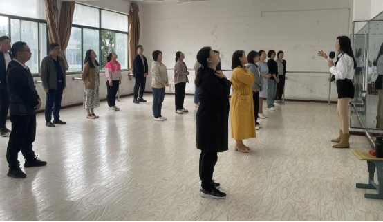 本次培训主要分为两部分。一是形体体态的调整,纠正教职工脖子前倾、驼背、抠肩、盆骨前倾或后移以及走路等问题,从而促进教职工身体健康,帮助教职工进行体态管理。二是面部表情的管理,通过调整眼神和面部表情促进日常工作中人际关系,进一步改变教职工精神风貌。
