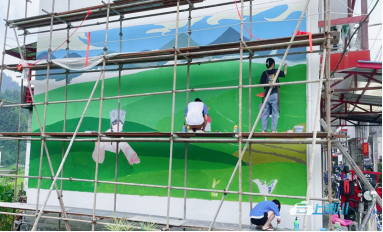 学校“湖科青年”志愿服务队在乡村振兴帮扶点开展了“艺术点‘靓’乡村,墙绘传递新风”的主题墙画绘制活动