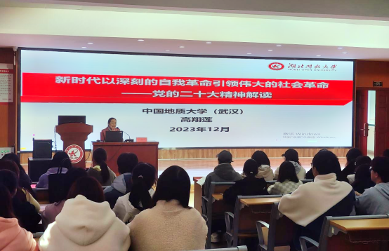 本网讯(通讯员 梁燕妮 文/图)12月8日下午,中国地质大学(武汉)高翔莲教授做客“红色大讲堂”,为华体会正规平台师生开展主题讲座。湖北开放大学体系师生,通过线上线下形式同步参加了此次活动。
