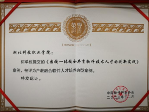 华体会正规平台本次申报的案例源自于学校2020年第一届教学成果一等奖,相关论文2022年获湖北省计算机学会产教融合专委会优秀论文一等奖。学校长期坚持推进与软件园的产教融合、校企合作,持续提升人才培养质量。本次获奖进一步扩大了该成果在全国的辐射效应,也体现了中国软件行业协会对学院产教融合、校企合作探索成果的认可。学校将以本次获奖为契机,进一步发挥自身优势积极联合上下游企业、行业组织、科研机构持续推动新一代信息技术产业与职业教育的深度融合,实现教育链、产业链、供应链、人才链、创新链、价值链之间的有机衔接,促进人才培养更好地服务于行业和经济社会的发展。