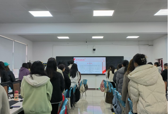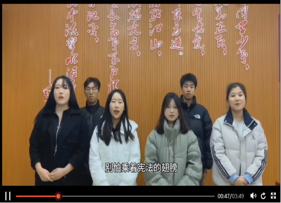 在宪法晨读活动中,各学院同步观看教育部组织的教育系统“宪法晨读”活动网络直播。全体辅导员领读宪法部分条款,现场学生跟读。“红旗长扬,我们迎着朝阳,成长路上,聆听宪法雄壮的声响,我们自立我们自强,是她伴随我们成长……”同学们齐声共唱宪法传唱歌曲。动听的旋律,美妙的歌曲犹如一颗种子,深植在同学们的心田,激发青年对宪法的热情,提升宪法感染力。