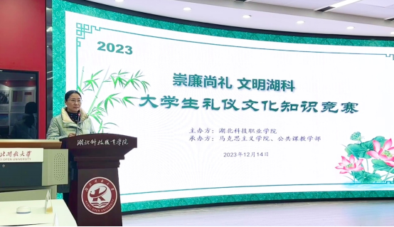 本网讯(通讯员 谢贝妮 文/图) 为弘扬廉洁文化,培育礼仪修养,引导大学生养成学礼、知礼、行礼的好习惯,在校园中营造风清气正的良好氛围,12月18日下午,华体会正规平台2023“崇廉尚礼,文明湖科”大学生礼仪文化知识竞赛(决赛)在思政课体验式学习中心举行。本次活动由马克思主义学院、公共课教学部承办,机电工程学院、传媒艺术学院等部门领导和学生参加了现场活动,马克思主义学院、公共课部副主任李映主持。
