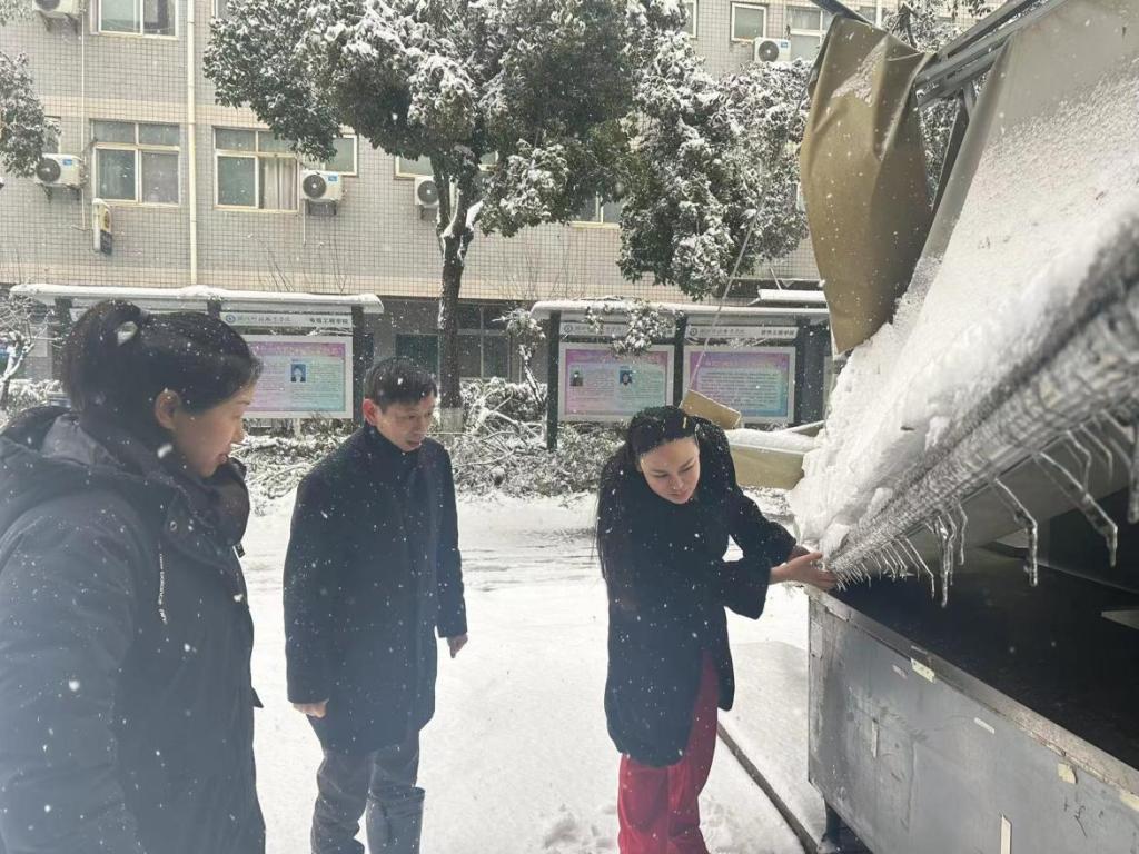 两校区断裂、倒塌大型乔木532棵,校园道路全部被堵。后勤服务集团第一时间组织相关单位加派人手和设备,铲雪除冰、清除断枝、清理路障,对已松动的危险树枝进行切割;对校园内垂落的电线逐个排查安全隐患,防止意外灾害事故发生,保障供电、供水线路和设备正常运转;检查关山校区食堂屋顶安全,及时清除屋面积雪,避免坍塌事故;安排人员彻夜坚守,全方位关注天气状况,及时报告情况实施处置方案。