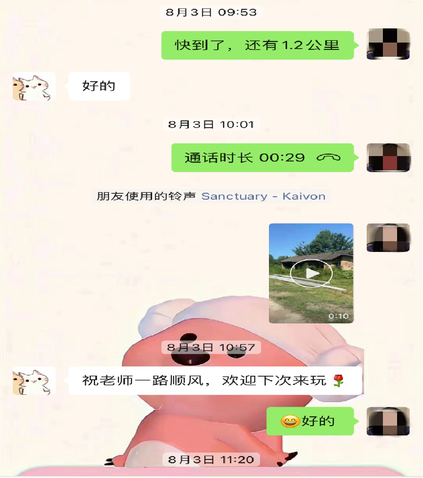 返程路上小洁又主动给我发了信息,“祝老师一路顺风,欢迎下次再来玩。”看着这条信息,我知道她在不断成长!