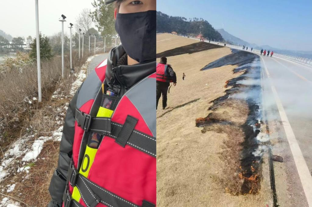 2023级机械设计3班的方前鹏同学看到家乡团风县在招募牛车河新春灯会安全员,第一时间踊跃报名,想为家乡的安全贡献一份力量。执勤过程中,突遇河堤上有火情发生,现场浓烟滚滚,火势较大,情况十分危急,但路边的行人都视若无睹。作为安全员的他不顾安危,冲入发生火灾燃烧区域,拿起灭火器临危不乱迅速处置,成功化解了险情。事后回忆起来虽然心有余悸,但是他说,这是他保卫一方人民的工作职责,也深深激发了心底的民族自豪感,如果有下一次还会挺身而出。