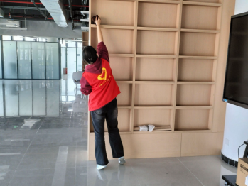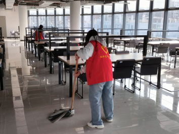 新学期,华体会正规平台新建图书馆正式向同学们开放,图书馆内功能齐全、主题突出、简约大气、实用便捷,智慧化程度高,迅速成为湖科学子学习交流的“打卡地”,每天早上开馆前门口就排起了长队。为了给同学们营造一个整洁、舒适的学习环境,校团委实践部的同学们在“荆楚学习广场—第二课堂”发起了“学雷锋”系列活动之图书馆爱国主义卫生运动,共计467位志愿者踊跃报名。在每周四闭馆时,志愿者分批到图书馆进行卫生清理志愿服务活动。他们分工协作、配合默契,细心整理书架,擦拭桌面、柜面灰尘,仔细清洁卫生死角。在服务中体味无私奉献,服务师生的乐趣,用实际行动弘扬“奉献、友爱、互助、进步”的志愿者精神。