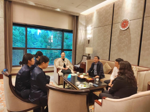 宋移安一行参观了酒店的运营区域,深入了解企业文化和实习生工作环境。在茶话会上,三位2021级国际邮轮乘务管理专业实习生表示非常感谢校企双方对她们职业成长的帮助,通过近6个月的实习,不仅提高了专业技能,更磨练了意志。宋移安高度肯定企业方在实习期间对实习生的职业成长帮助,并就学生实习安全管理问题与企业方交换了意见并达成共识。他激励实习生变被动实习为主动学习,要以长远的眼光正确看待6个月的实习,脚踏实地做好本职工作,在不断地实践学习中积累经验、稳步提升,早日成长为邮轮旅游行业优秀职业人。