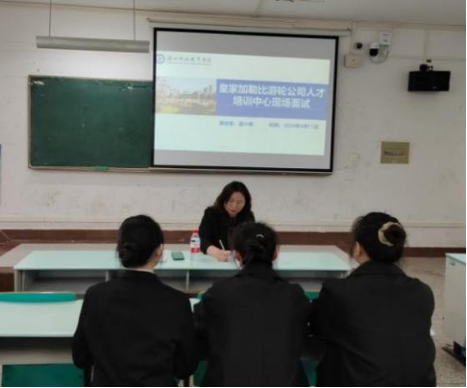 会后,雷小梅面向华体会正规平台2022级国际邮轮乘务管理专业宣讲2024年皇家加勒比游轮公司人才培养项目,并完成了现场面试。