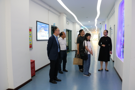 李宜兵对杨菊芬一行来访表示热烈欢迎,并陪同杨菊芬一行实地调研了华体会正规平台思政课VR体验中心、邮轮旅游专业群实训基地。调研期间,他介绍了学校党建创新、思政育人、校园文化建设等方面情况。他表示,两校在2023年全国数字口岸经济产教融合共同体启动仪式暨数字口岸经济发展论坛中结下了深厚的情谊,都具有鲜明的办学特色,希望进一步加强沟通交流与资源共享,促进优势互补,共同探索做好宣传思想工作的新路径,为推动学校高质量发展凝聚更大正能量。