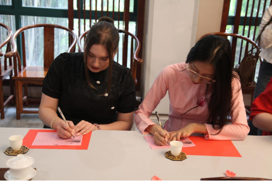 本网讯(通讯员 沈文捷 高杨舒 欧亚梅 陈蔚/文 刘捷 徐敏/图)为响应“一带一路”教育行动,促进外国留学生深入体验中国传统文化,增进国际交流互鉴,4月19日和26日,学校邀请中南民族大学来自俄罗斯、越南、哈萨克斯坦、吉尔吉斯斯坦的6名留学生及3位教授来校,开展了两场中国传统文化课程交流活动。