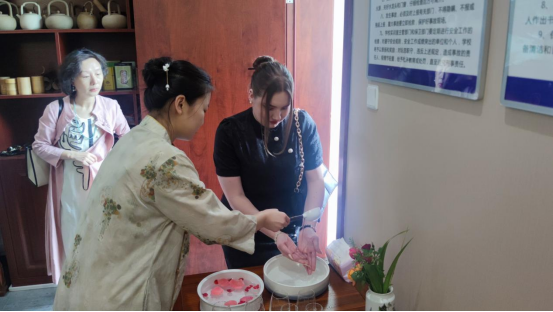留学生们表示,通过两次课程交流,在寓教于乐中近距离感受非物质文化遗产蓝染的魅力,共同鉴赏与感受中国茶文化的美韵。何红一教授对两校开展的留学生教学交流活动赞不绝口,并深表感谢,希望能有更多的合作交流机会。