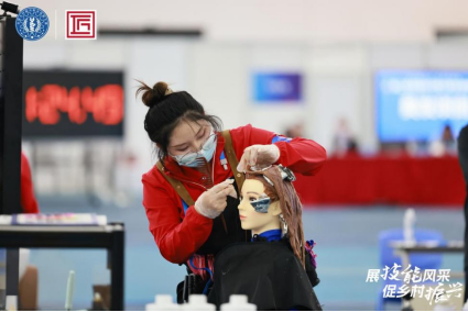 有了更好的平台,程亚林锚定技能大赛美发赛项目标,沉下心开始了日复一日的练习,备赛过程中耗费了上百个头模和数十把剪刀。寒暑假期间程亚林也没有休息,留在学校全心全力投入备赛。努力的汗水终将浇灌出丰收的果实,程亚林逐渐在各大技能大赛中崭露头角。在今年湖北省乡村振兴职业技能大赛美发赛项中,她凭借优异的表现拔得头筹,以第一名的成绩代表湖北省参加第二届全国乡村振兴职业技能大赛,并取得了全国第十的好成绩。每日无休地练习,让她在美发领域日益精进,也用刻苦、耐心、专注诠释了“工匠精神”。