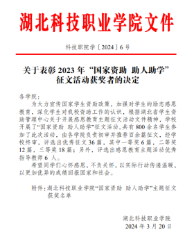 本网讯(通讯员 纪莎莎/文 各学院/图)近日,根据湖北省学生资助管理中心《关于开展2024年度高校学生资助诚信教育主题活动的通知》精神,学校组织开展了以“国家资助 助人助学”为主题的感恩诚信系列主题教育,同学们纷纷通过丰富多彩的方式表达对国家、政府、学校资助的感恩之情,立志树牢诚信意识,积极奉献回馈国家社会。