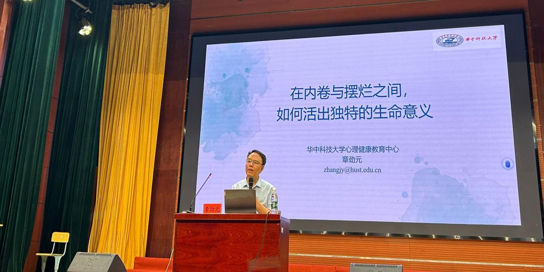 本网讯(通讯员 梁璐茜 文/图)6月5日,由学工部心理健康教育中心主办,经济贸易学院二级心理辅导站承办的心理健康与生命教育主题讲座在学校报告厅举行。华中科技大学大学生发展研究与指导中心主任、湖北省心理健康教育与咨询研究会副秘书长章劲元教授受邀作主题报告。各学院心理健康教育指导老师及300余名学生代表参加活动。