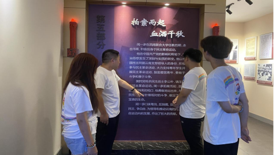 培育红色精神,共绘青春蓝图。在教学活动中,实践团队结合所学所思,将爱国主义思政教育与升旗仪式、课堂教育和实践活动相融合,和学生一起感悟红色精神在当代的生动实践。教学之余,团队成员共同前往浠水县闻一多纪念馆开展主题团日活动,探访英勇先烈的故事,领悟红色精神。