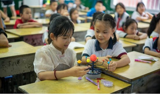 童趣乘风起,星河入梦来。在天文课堂上,实践队员运用视频学习、模型搭建及辨识记忆等多种方法,引领孩子们在探索中增长知识,在记忆中拓宽视野,与孩子们共同学习太阳系八大行星、月影成像等天文知识,并巧妙地通过“嫦娥六号奇遇记”创意的故事形式,进一步点燃了孩子们对天文的好奇心和探索航天的热情。