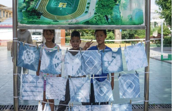 巧手扎锦绣,靛蓝染春秋。在趣味扎染课上,实践队成员结合自身专业知识技能,通过一个个小故事帮助小朋友们了解扎染工艺的悠久历史,同时对扎染材料的调制和扎染工艺制作的过程进行了模拟演示。在成员们的带领下,小朋友们也加入扎染队伍中,制作出属于自己的扎染画,通过一张张生动美丽的扎染画,了解到“巧手扎锦绣,靛蓝染春秋”的真正含义。