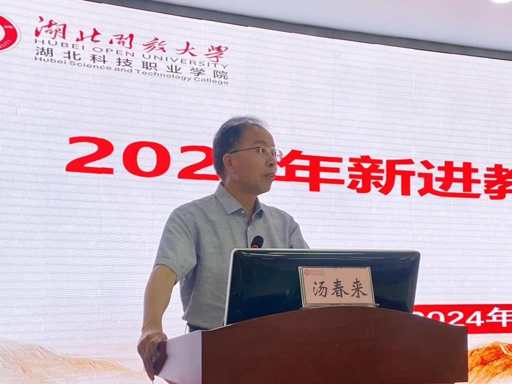 副校长汤春来教授代表学校对全体新进教职工表示欢迎。他从发展历程、办学模式、发展现状三个方面对学校进行了全面系统的介绍,并对新进教职工提出了四点殷切希望:一是牢记教育初心;二是践行师德规范;三是精进教研能力;四是融入学校主流。最后,他勉励新进教师在强化业务水平上下苦功,在教学科研中增长才干,祝愿大家在新的工作岗位上工作顺利、生活愉快。