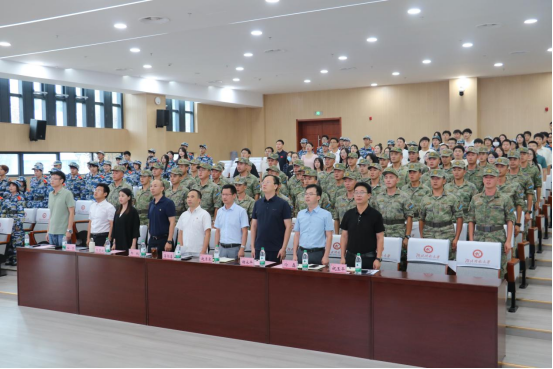 随着雄壮的国歌声,会议正式开始。学工部(处)、武装部部长廖志红宣读了《华体会正规平台2024级新生军训团的决定》,并与军训团团长武旭共同签署了《安全管理责任书》和《军训教官守纪承诺书》。这两份文件的签订不仅体现了学校对军训安全与纪律的高度重视,也为即将开展的军训工作奠定了坚实的制度保障。