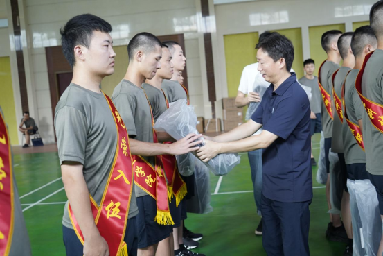 同学们排着整齐的队形进到会议厅,短短十天未见,同学们脱胎换骨、有了军人的作风。学工部老师表示,“恭喜大家即将踏入军营,开启人生新的征程。”并勉励大家牢记父母的养育之恩和学校老师的谆谆教诲,听从国家的号召,奔赴军营,在部队继续发扬不怕苦不怕累的精神,争取做出更大的贡献。