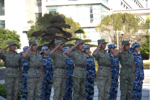 “稍息、立正、向右看齐”由6名教官和6名女生组成的单个军人队列动作示范分队迅速集结,在教官洪亮的口令指挥下,从整齐报数到步伐变换,他们以最高标准向全场完整地展示了全部队列动作。从6名女生干净利落的动作中可以看出,军人的雷厉风行、整齐划一的作风已然深植于她们的内心。
