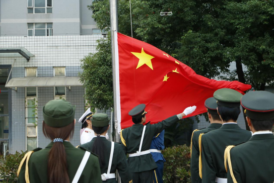 清晨七时,国旗护卫队的队员们迈着铿锵的步伐,整齐划一地走向升旗台,伴随着庄严的国歌,鲜红的国旗冉冉升起,全体师生肃立,目光如炬,内心充满着对祖国的热爱,对过去的敬仰和对未来的期待。